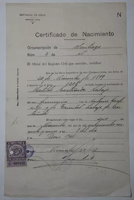 Certificado de Nacimiento Matilde Castañeda