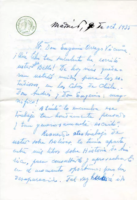 Carta de Rufino Blanco a Eugenio Orrego Vicuña