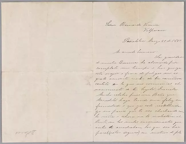 Carta de Dolores Vicuña a Bernardo Vicuña