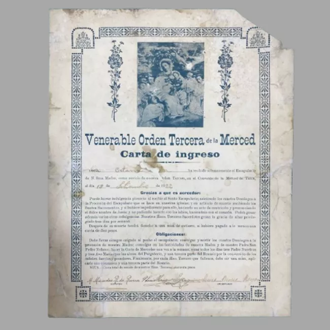 Documento enmarcado. Por el anverso tiene inscripciones y el dibujo de...