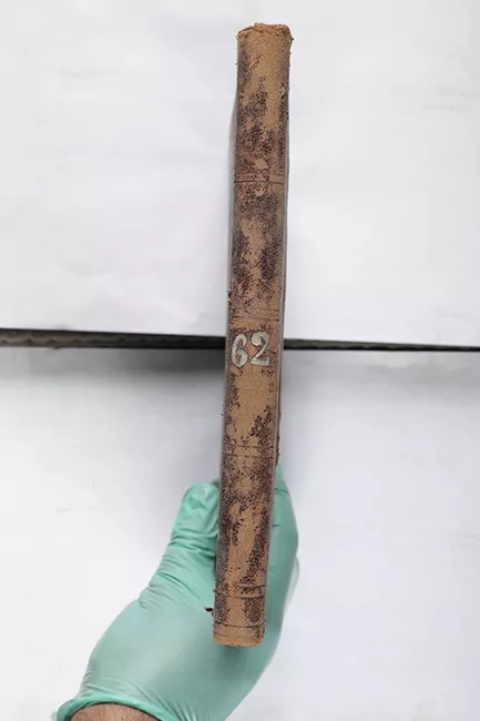 Objeto de tapas y lomo forrados en tela marrón, con timbre en tapa y l...