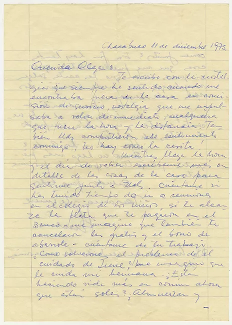 Carta de Hernán Guajardo a su esposa Olga durante detención en Oficina Chacabuco 1973
