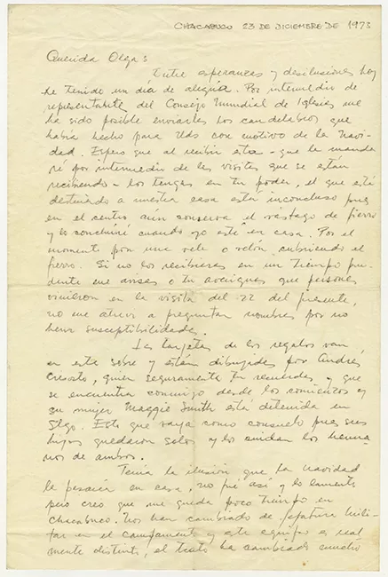 Carta de Hernán Guajardo a su esposa Olga durante detención en Oficina Chacabuco 1973