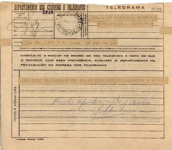 [Carta] [1955 ene.], Quito, Ecuador [a] Gabriela Mistral, Nueva York, [EE.UU.] [manuscrito] Benjamín Carrión.