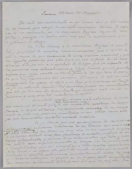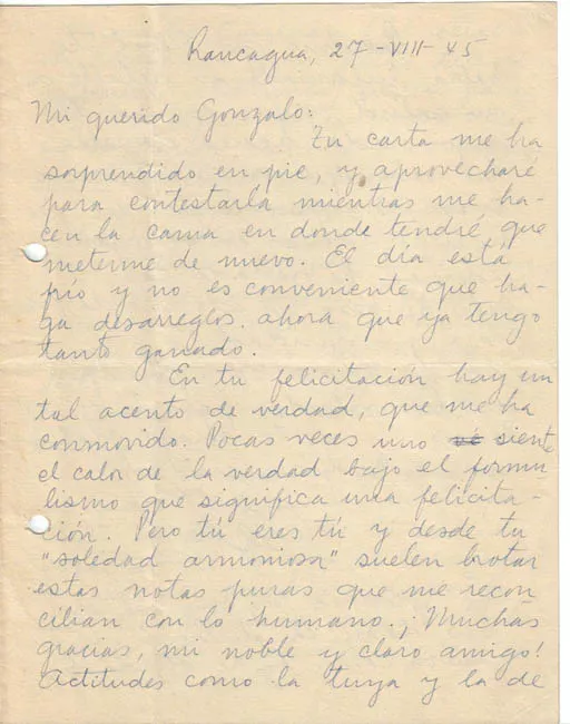 Carta de Oscar Castro a Gonzalo Drago, manuscrita en tinta azul sobre ...