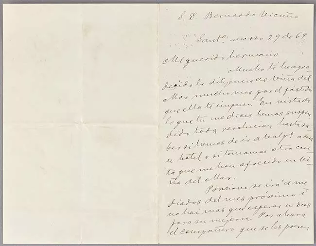 Carta de Benjamín Vicuña Mackenna a Bernardo Vicuña