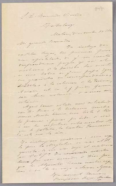 Carta de don Benjamín Vicuña Mackenna a la señora Amelia Gándara de Christie