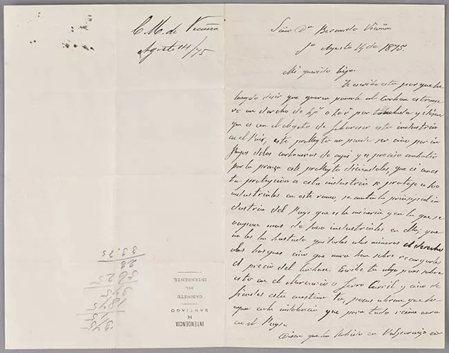 Carta de Carmen Mackenna a Bernardo Vicuña