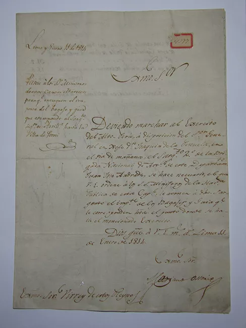 Correspondencia de Mariano Osorio a Virrey del Perú