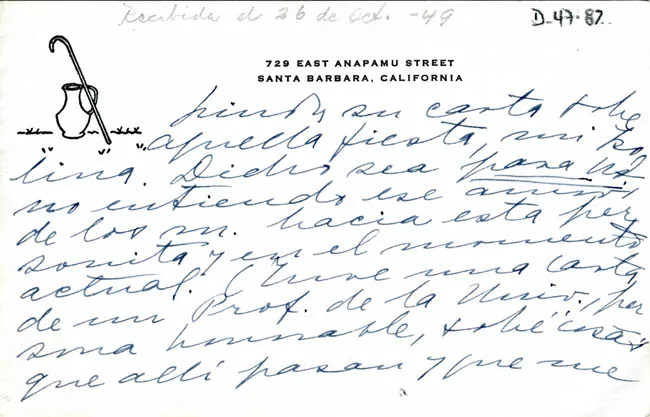 Carta de pésame de don Luis A. González a la señora Victoria Subercaseaux